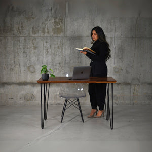 - Minimalist design with the accent hairpin steel legs, solid as a rock, adds to its charm and elegance. Much more leg room to move around too.